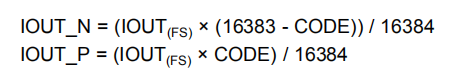 DAC5670具有电流汇输出。电流通过IOUT_P和IOUT_N由Dx_P[13:0]和Dx_N[13:0]控制。为了便于使用,D[13:0]表示为Dx_P[13:0]及其补码Dx_N[13:0]的逻辑位等价物。DAC5670支持直接二进制编码,D13作为MSB,D0作为LSB。当所有D[13:0]输入设为高时,满标度电流流过IOUTP;当所有D[13:0]输入设为低时,满标度电流流过IOUTN。IOUT_P和IOUT帴N之间的关系可表示为方程式1。