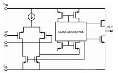 这一专利折叠共源共栅级有一个组合AB级放大器级,它取代了传统的折叠cas编码级。因此,AB类折叠共栅级与传统折叠共源共栅级相比,其静态电流要低得多。这会导致较小的偏移和噪声贡献。减少的偏移量和噪声的贡献反过来又降低了偏移电压电平和LMV341/LMV342输入端的电压噪声电平/LMV344。同时,较低的静态电流会导致放大器的开环增益。较低的静态电流不影响放大器的转换速率,也不影响放大器处理来自输入级的总电流摆动。该器件在低频时的输入电压噪声为低1kHz,比BJT输入的器件稍高然而,PMOS输入阶段的结果是当频率高于1kHz时,输入偏置电流和输入电压噪声降低。