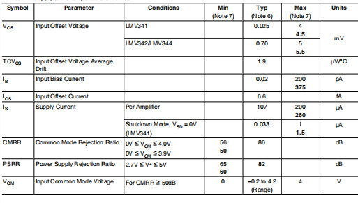 除非另有规定,否则TJ的所有限制都是保证的=25°C,V+=5V,V−=0V,VCM=V+/2,VO=V+/2和R L>1MΩ。Bold 面部限制适用于极端温度。
