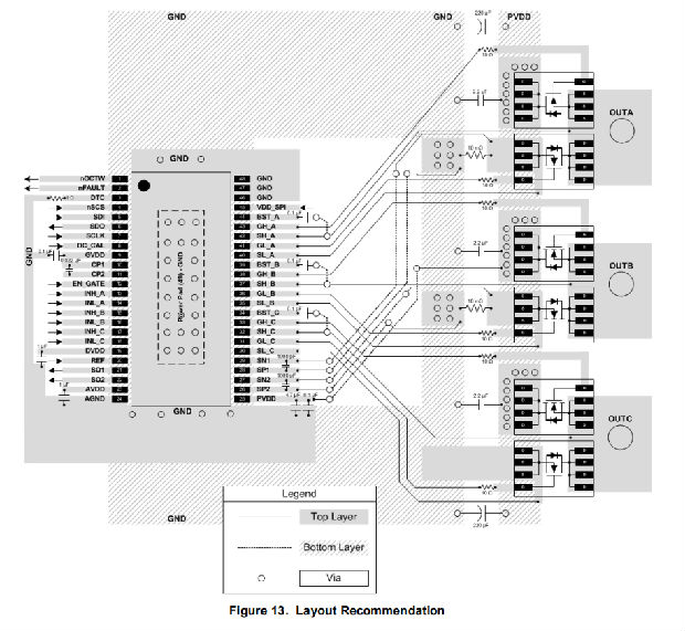 •尽量清理DRV8303周围和下方的空间,以便更好地从电源板散发热量。