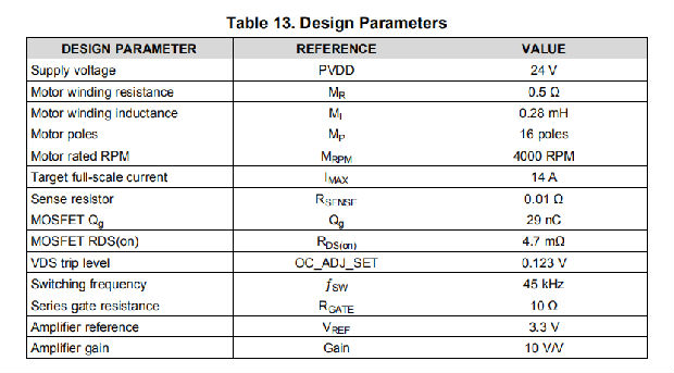 1. 确定电机需要的峰值电流(IMAX)。这将取决于电机参数和您的具体应用。本例中的I(MAX)为14A。