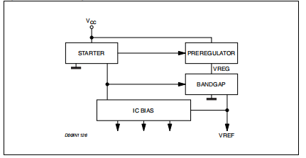 内部块连续感测VCC、Vref和Vbg。如果电压高于他们的门槛,监管者开始工作。VCC(UVLO)上也存在滞后现象。