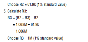 3.计算R2+R3。过电压应为阈值设为5.5V,设计公式如下: