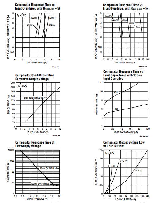 比较器的输入可以从负方向摆动电源V–至正电源V+的1.3V(最大)范围内。输入电压可在低于V–或高于V的情况下强制300 mV+无损坏,典型输入泄漏电流为只有±10pA。