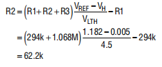 4计算R2。应设置欠压阈值4.5V时,设计公式如下: