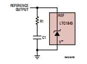 内部带隙基准的输出电压为1.182V参考V–。参考精度为1.5%从-40°C到85°C。它通常可以产生大于电流为1mA,并在5V电源下达到10μA。参考文献可驱动高达0.01μF的旁路电容器振荡。通过插入一个串联电阻,电容可使用高达100μF的值(图1)。