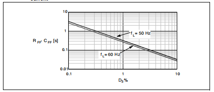 图36显示了一个图表,它可以帮助选择基于最大期望三次谐波失真量。始终将RFF和CFF连接到如果引脚保持浮动或直接连接到,则IC将无法正常工作接地。