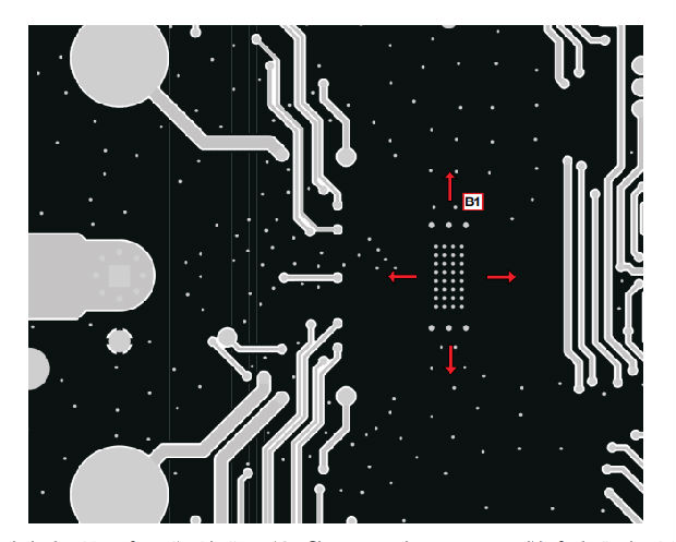 •建议使用多个过孔,以降低过孔的阻抗。尽量清理设备周围的空间,尤其是底部PCB侧,以改善热扩散。
