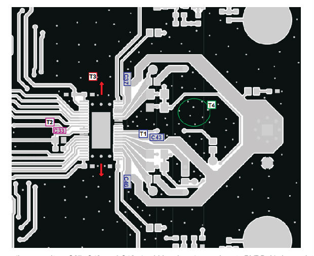 T1:PVDD去耦电容器C37、C43和C46应放置在非常靠近PVDD_X引脚和接地回路的地方。