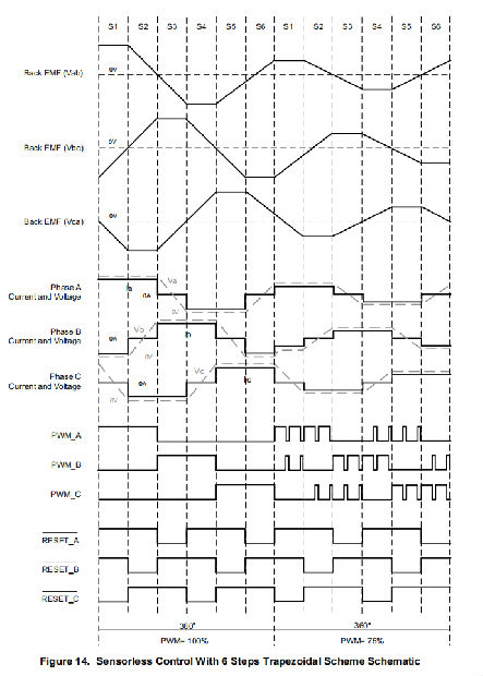 采用6步梯形方案的无传感器控制
