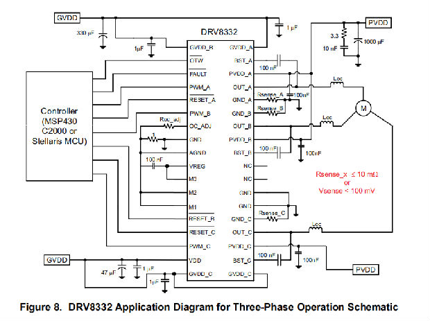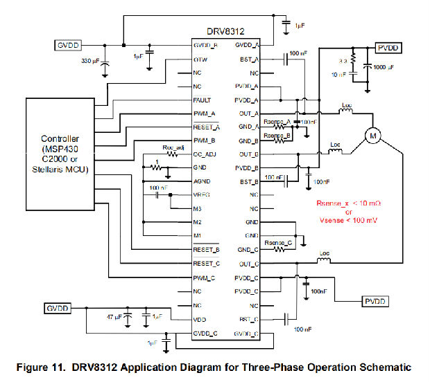 DRV8312三相运行应用图
