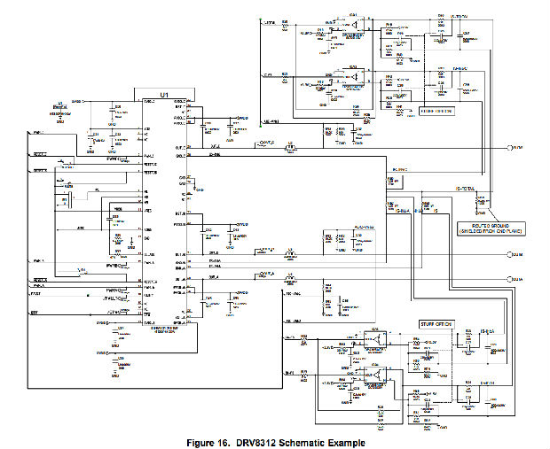 图16、图17和图18显示了DRV8312的原理图和PCB布局示例。