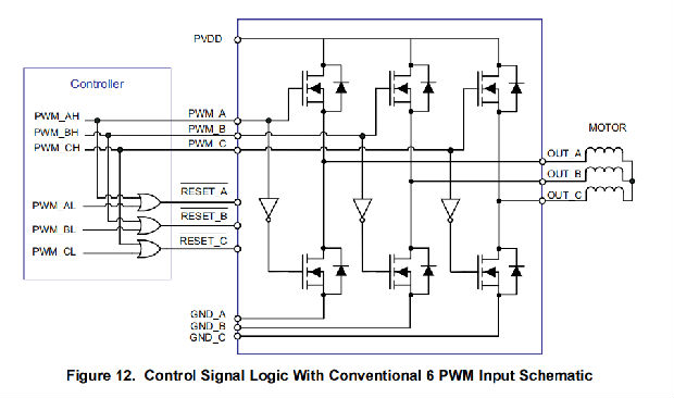 采用常规6 PWM输入方案的控制信号逻辑