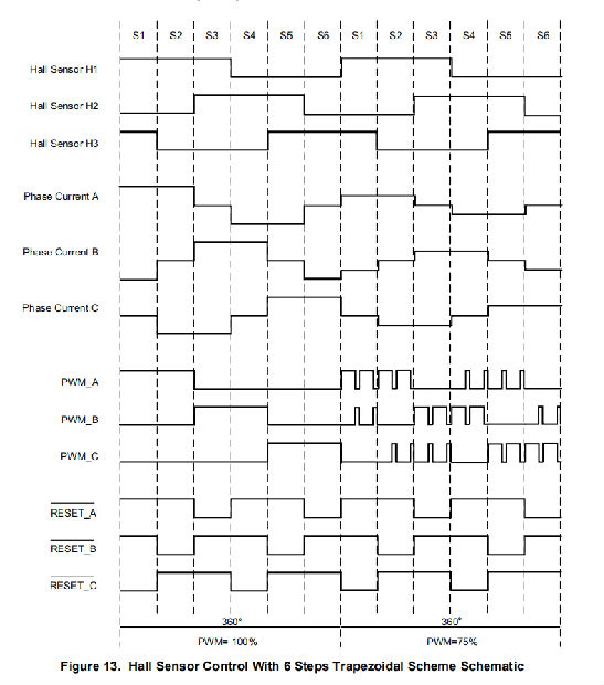 采用6步梯形方案的霍尔传感器控制
