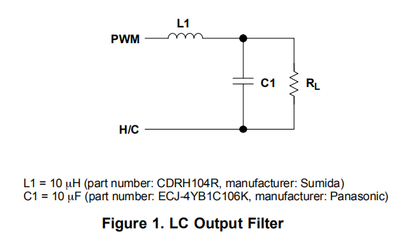 图2、3、8和9中使用的LC输出滤波器如下所示。