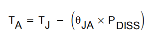 尽管DRV593和DRV594比传统的线性解决方案效率高很多,但是输出晶体管导通电阻上的功率降确实会在封装中产生一些热量,其计算方法如等式(11)所示: