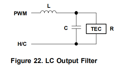 根据这个关系,10%的纹波电流可使最大温差降低1%。LC网络可用于过滤流向TEC的电流,以减少纹波量,更重要的是,保护系统的其余部分免受任何电磁干扰(EMI)。