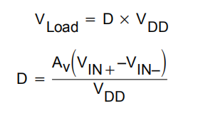 通过方程式(1)确定负载上的差分电压,使用等式(2)确定占空比。差分电压定义为PWM输出滤波器后相对于H/C输出测得的电压。