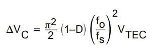 对于具有极低等效串联电阻(ESR,小于10 mΩ)的相对较小的电容器(小于22μF),例如陶瓷电容器,可使用以下等式(8)来估计上的纹波电压电荷变化引起的电容器: