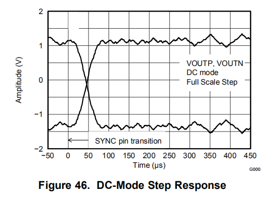 图46显示了dc模式的阶跃响应时间。正弦和数字模式的阶跃响应具有相似的稳定时间。注意,信号路径中的附加滤波器组件也可能影响响应时间。