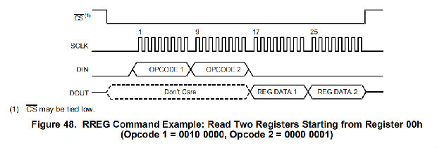 以下字节:以MSB first格式注册数据输出。操作码的第16个SCLK下降沿时钟输出寄存器数据的MSB。