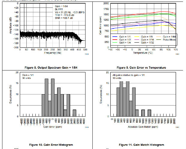 增益匹配是相对于所有模拟增益,增益=1/1的增益误差。