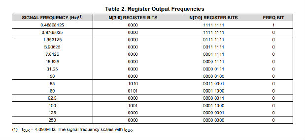fCLK=4.096兆赫。信号频率用fCLK缩放。