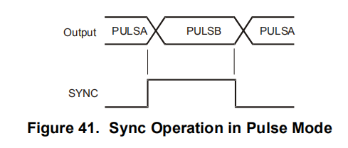 在脉冲模式下,同步引脚选择两个预先编程的脉冲电平中的一个。脉冲电平可通过脉冲电平寄存器PULSA和PULSB,在大约3分贝的步长内从+2.5 V编程到-2.5 V。当SYNC值低时,PULSA寄存器的值驱动DAC;当SYNC值高时,PULSB寄存器的值就是DAC的代码,如图41所示。当同步管脚更改时,DAC输出立即更新为新代码。