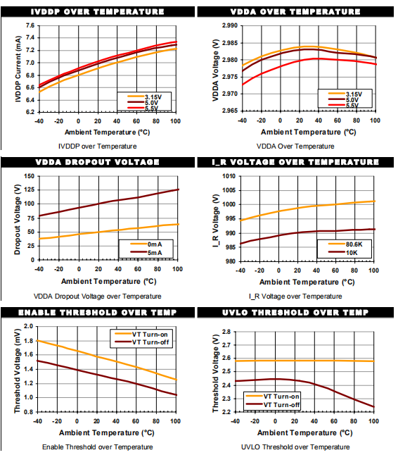 电压输入,3.0至5.5V输入范围。切换VDDP(请参阅启用)以切断芯片电源。一个LDO调节器跟随开关产生VDDA(见VDDA)。输出驱动级直接由VDDP输入。在配电设计中必须小心,以尽量减少瞬态和噪声耦合VDDP到VDDA输出。