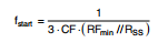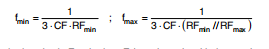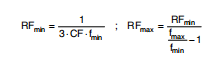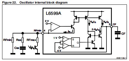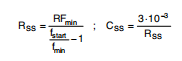 将CF固定在100 pF或nF中(与最大源一致RFmin引脚的能力,并将其与设备的总消耗量进行权衡,选择RFmin和RFmax的值,以便振荡器频率能够覆盖调节所需的整个范围,从最小值fmin(最小输入电压和最大负载)至最大值fmax(在最大输入电压和最小负载):