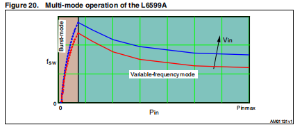 基本上,RFmax定义了L6599A进入的开关频率fmax突发模式操作。固定fmax后,可以从关系中找到RFmax: