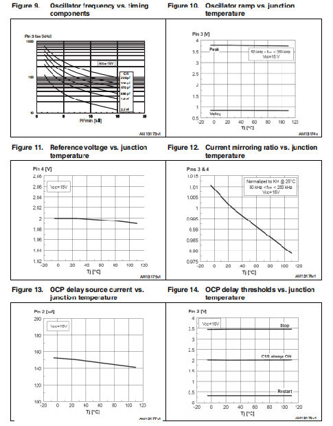 该功能通过电容器CDelay和并联电路2引脚(延迟)实现电阻器R接地。当ISEN引脚上的电压超过0.8 V时OCP比较器,除了放电CSS,打开一个内部电流发生器从延迟管脚引出150μA的电源,并对CDelay充电。过载/短路时,OCP比较器和内部电流源被反复激活,CDelay被一个基本上取决于电流的时间常数的平均电流充电CSS传感滤波电路及谐振电路的特性;放电考虑到相关的时间常数通常是更久了。
