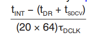 对于tINT=400μs和DCLK=20MHz,DDC264s的最大数量为6(对于Format=0,则为7)。