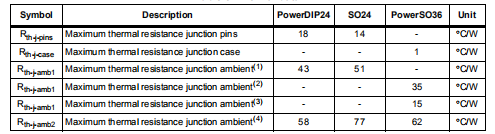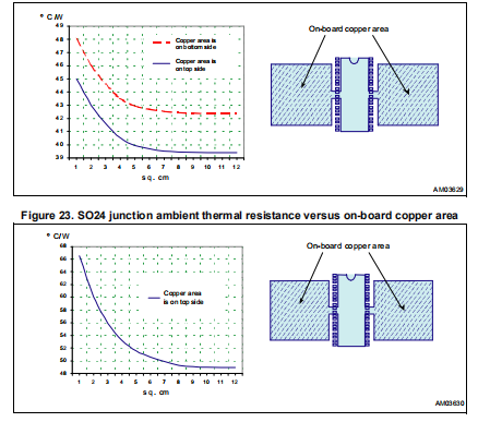 1.安装在多层FR4 PCB上,其底部的散热铜表面为6 cm2(厚度为35μm)。