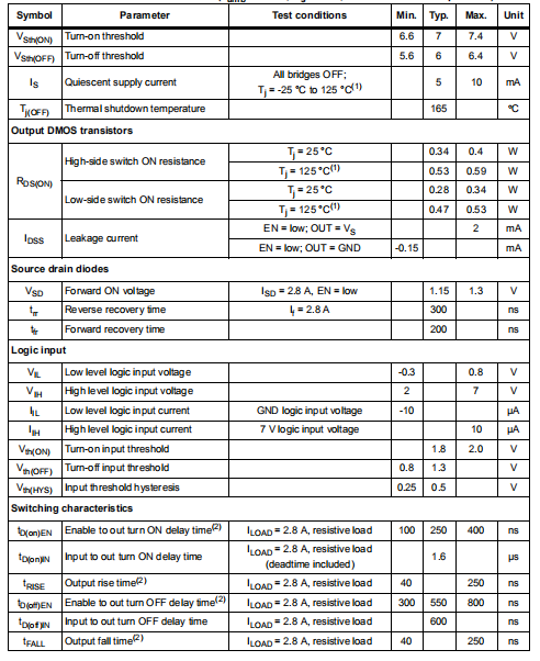 除了过电流检测,L6206设备还集成了热保护防止结温过高时损坏器件。它能感应到模具温度通过集成在模具中的敏感元件实现。当结温达到165°C(典型。滞后值(典型值15°C)。价值)