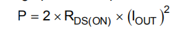 IOUT等于直流电机的平均电流。注意,在启动和故障条件下,该电流远高于正常运行电流;还需要考虑这些峰值电流及其持续时间。因数2来自于这样一个事实:在任何时刻,两个fet都在传导绕组电流(一个高压侧和一个低压侧)。