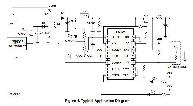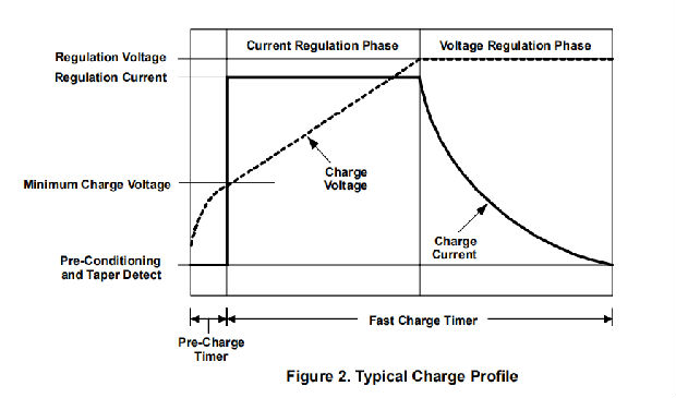 细胞深度放电至24Bq阶段的特征。预调节阶段通过二次侧的线性调节来实现。在预处理之后,bq24901将充电电流调节到外部电流检测电阻器设置的值。一旦电池达到充电电压,电压调节回路接管并完成充电循环。调压精度优于±30mV。根据最小电流终止充电。最小电流电平通过TADJ引脚设置。内部5小时充电计时器为充电终止提供备用。