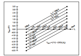 (3) 输出核心对数函数被调整为每十年输入电流变化1V输出。