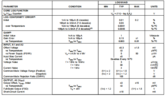 双极晶体管,LOG101建立了输入电流比的对数函数。从基极发射极电压定义为: