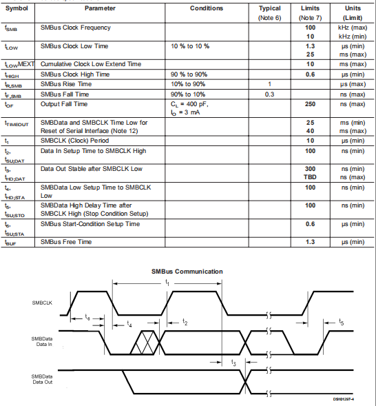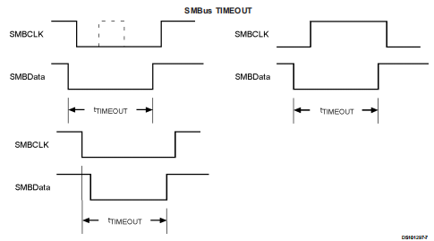 注12:将SMBData和/或SMBCLK线保持在低位的时间间隔大于tTIMEOUT将导致LM82将SMBData和SMBCLK重置为空闲