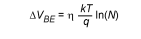 现代远程温度传感器所使用的技术测量两种不同操作条件下VBE的变化二极管的点。对于N:1的偏压电流比,其差值如下: