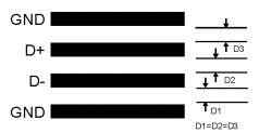 4.二极管轨迹应被接地保护环包围可能的话,在上面和下面。这个GND防护罩不应位于D+和D-线之间。在如果噪声确实耦合到二极管线路上如果它是耦合共模,则是理想的。那是同样的D+和D-线(见图10)