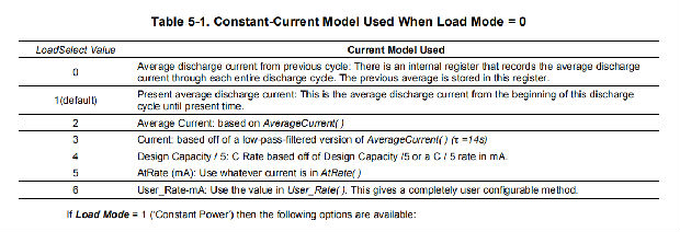 负载模式用于选择阻抗跟踪的恒流或恒功率模型™ 加载选择中使用的算法(请参见加载选择)。负载模式为0时,使用恒流模型(默认)。当为1时,采用恒功率模型。