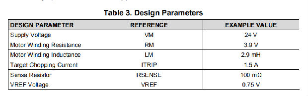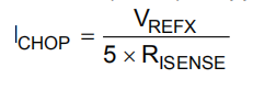 如果使用0.25-Ω感测电阻器且VREFx引脚为2.5 V,则满标度(100%)斩波电流将为2.5 V/(5×0.25Ω)=2 a。