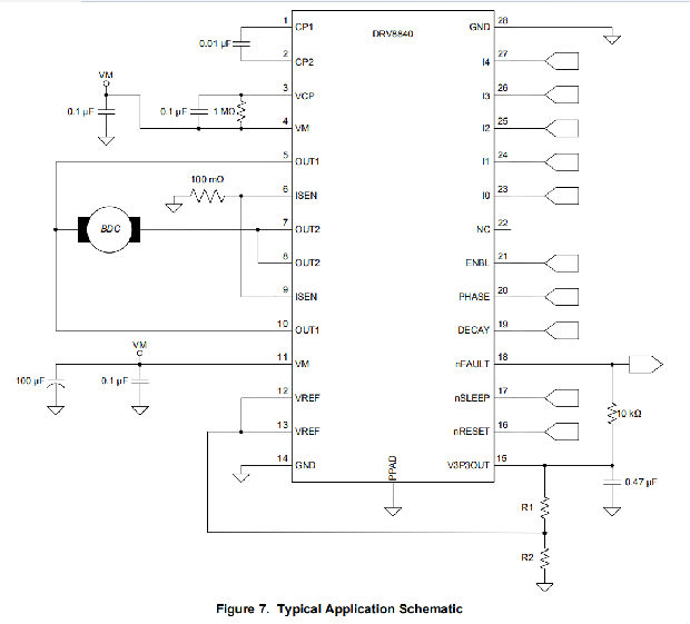 DRV8840设备具有充分的保护,可防止欠压、过电流和过热事件。