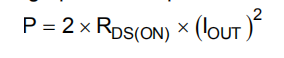 IOUT等于直流电机的平均电流。注意,在启动和故障条件下,该电流远高于正常运行电流;还需要考虑这些峰值电流及其持续时间。因数2来自于这样一个事实:在任何时刻,两个fet都在传导绕组电流(一个高压侧和一个低压侧)。