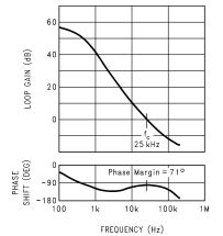 从图中可以看出,频率fc上的单位增益交叉预计约为25kHz。使用这个值,则计算该点的相位裕度约为84˚。为了验证这些计算的准确性,电路使用网络分析仪进行台架测试。测量的增益相位如图7所示。