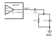 从QS的近似值可以看出,最高fp(HF)的频率出现在VIN的最大值处。fp(HF)的最低频率约为FOSC/10(当车辆识别号为=4.5V和VOUT=1.8V)。如上所述,极fp(HF)的位置通常在从FOSC/10到FOSC/4的范围。这根杆子通常在单位增益交叉频率附近,如果不进行补偿,可以显著降低相位裕度。通常,输出电容器的ESR形成一个零通常非常接近fp(HF)的频率,并提供负相移的消除否则因为。因此,必须小心选择输出电容器。LM2641的大部分环路补偿由误差放大器输出到地的R-C网络(见图4)。因为这是一个跨导放大器,它具有非常高的输出阻抗(160 kΩ)。